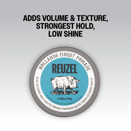 Die Blue Extreme Hold Matte Pomade hat einen reichen, süßen Rumduft und ist auf Wasserbasis, sodass sie nach der Anwendung leicht ausgewaschen werden kann.